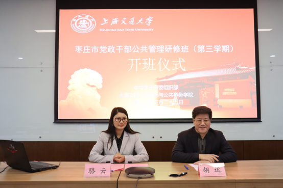 发布日期:2021-03-26<>访问次数:次3月25日,上海交通大学与枣庄市委组织部联合举办的枣庄市党政干部公共管理研修班(第三学期)“线上”开班。国际与公共事务学院代理院长胡近出席开班式并致辞,市委组织部副部长、三级调研员公丕彦就进一步深化培训成效、严肃培训纪律作讲话。开班仪式由培训中心主任骆云主持。