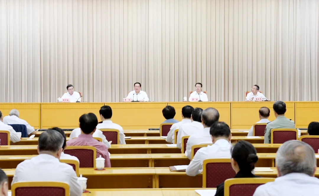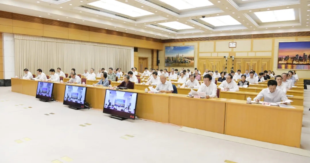 会议以电视电话会议形式举行,在市人大常委会、市政府和16个区设分会场。市委常委于绍良、刘学新、陈寅、吴清、翁祖亮、周慧琳、诸葛宇杰、凌希,市人大常委会副主任和曾经担任过市人大常委会领导职务的老同志,市高级法院院长、市检察院检察长出席会议。市各部委办局负责人,工青妇等人民团体负责人,部分在沪全国人大代表和市人大代表,各区党委、人大、政府负责人等参加。