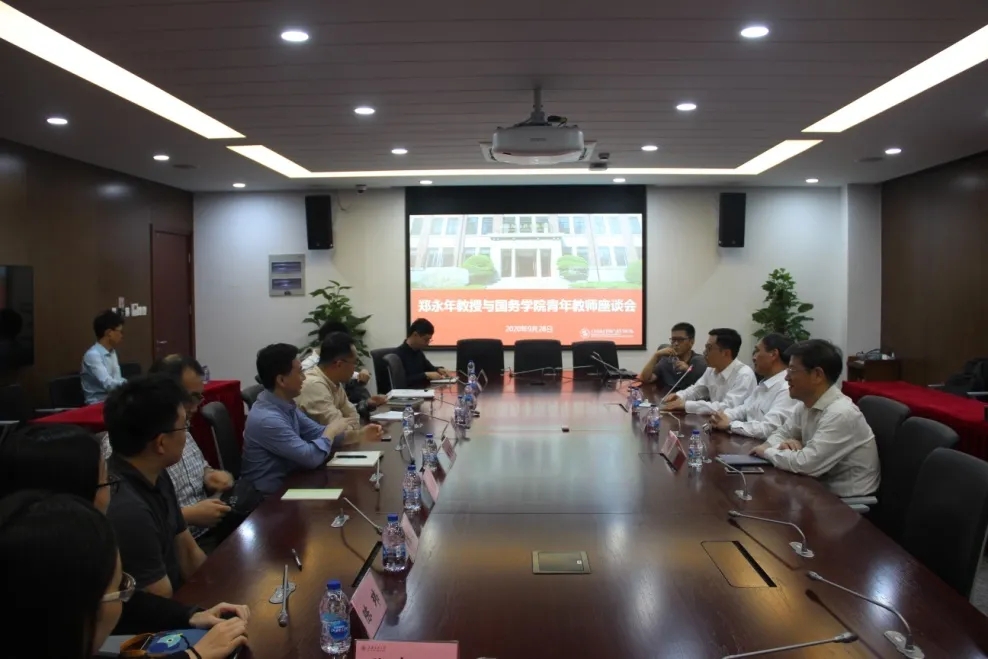 仪式结束之后,郑永年教授还参加了国务学院青年教师座谈会。学院政治学学科青年教师出席,大家围绕研究院未来发展、学科交叉、科学研究等方面进行了探讨。