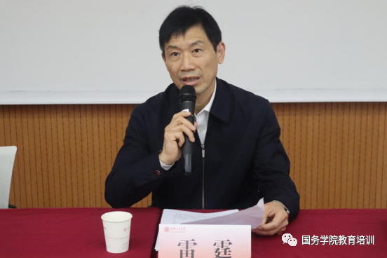 雷霆作开班动员讲话。他首先代表河南大学全体参训学员对上海交通大学国务学院的各位领导和工作人员表示感谢。他强调,河南大学对此次培训十分重视,在国家取得抗疫的阶段性成果,党的十九届五中全会闭幕不久,即启动了此次培训。学校党委选择上海市和上海交大,一是因为上海是中国共产党的诞生地,是一座敢为天下先并充满创新精神的城市,作为全国改革开放的排头兵与先行者,在这里能更好地感受中国共产党人的初心和使命;二是交大作为一所历史悠久、享誉海内外的综合性、研究型、国际化的知名大学,能提供诸多先进的办学经验。随后,他对此次培训学员们提出了三点要求:第一,提高站位、统一思想,组织中层干部培训是全面加强新时代干部教育工作的重要举措,是形成专业化队伍的重要实践;第二,明确重点、学思、践悟,此次培训日程紧凑,希望学员们能认真学习,消化思考。第三,严守纪律、树好形象,组织此次规模的培训不易,希望学员们能保持学习纪律,共同维护培训的有序进行。最后,他预祝此次培训能圆满成功,并再次对交大国务学院表示了感谢。